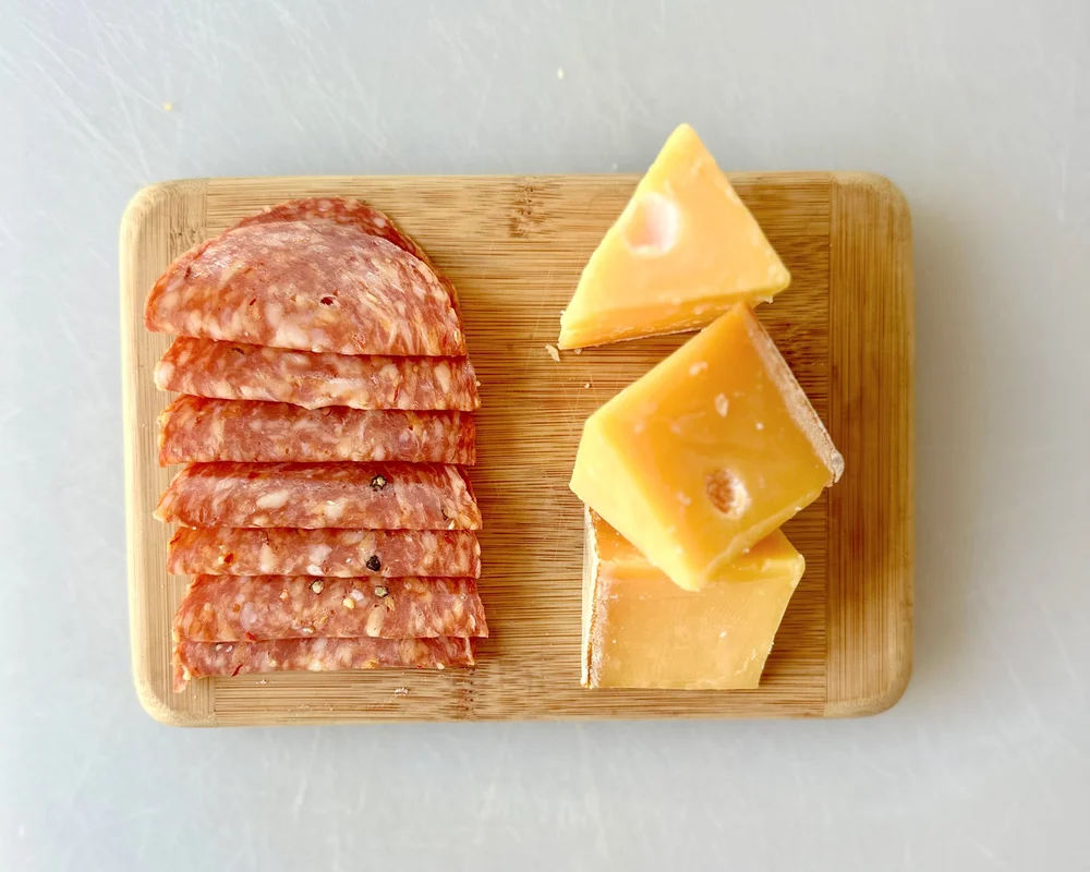 The medium-grind salami spiced with crushed pepper is complemented by the smooth, caramel notes of an aged Gouda.