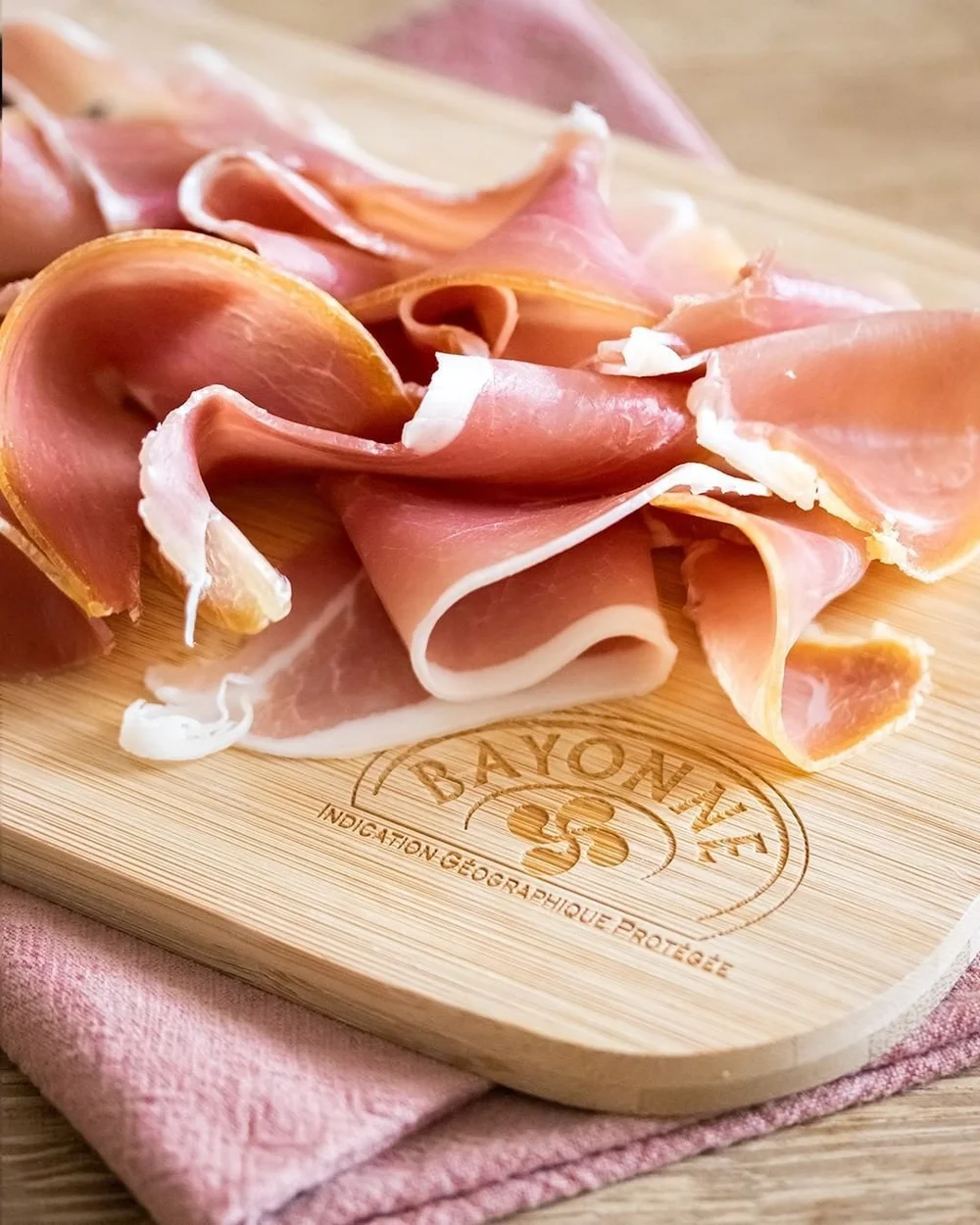 Choose cheese and charcuterie that share a provenance or terroir. Pair an alpine cheese with dried meat from the same region. Chances are that the flavors of the meat and milk sourced from animals that roam the same meadows will be harmonious when eaten together. “A very classic cheese pairing with Bayonne ham is to use a fresh sheep cheese,” says charcuterie expert and Chef Aurélien Dufour of Dufour Gourmet. “The Bayonne ham is from the Basque region, so it is often paired with sheep cheese from the region and especially the Ossau d’Iraty.”