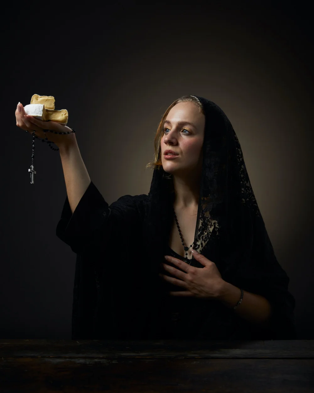 For Kubick, she was blown away by the nun’s ideas. Cheese is alive, but decaying in a controlled way. “That idea kinda fermented in my own head,” she says, cheese “unites all the different worlds—the animal world, world of flora, the human world, and even the sky in a way.” The sun feeds the plants that are eaten by the milk-bearing animals who are milked by humans who turn it into cheese. “There’s something so transformational and so magical,” she explains.