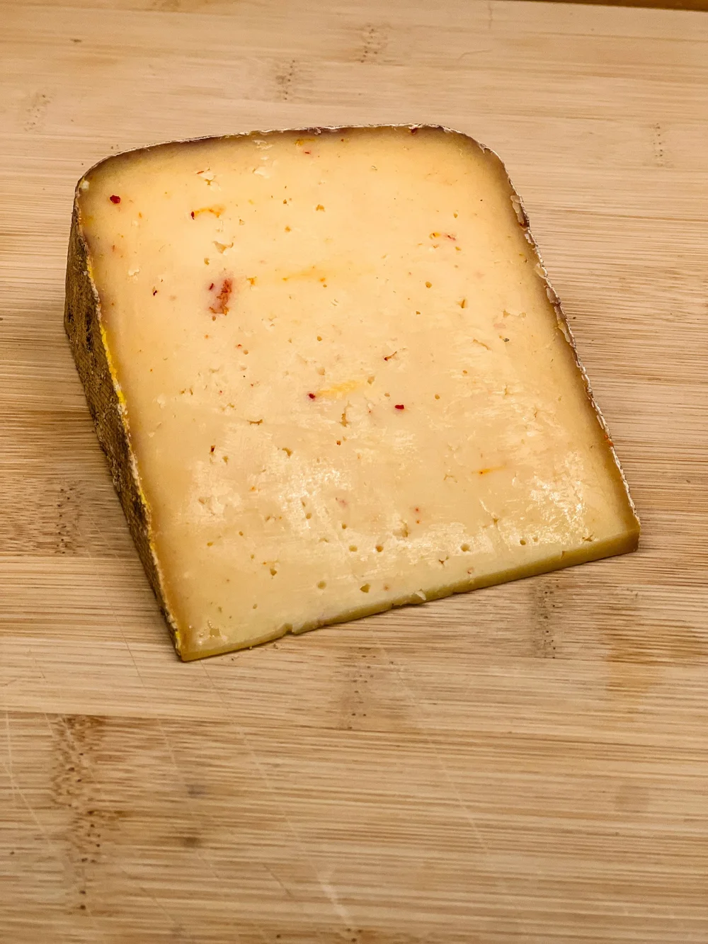 A 10-month-old mixte cheese, named for the blend of sheep breeds, is more intense and earthy. A younger Piment d’Espelette cheese, aged just over two months, has streaks of pepper running through. This is a cheese popular in Espelette, as the local Piment d’Espelette AOP pepper is mixed directly into the curd. It’s not traditional in centuries-old terms, but it’s become a modern classic on cheese boards in the French Basque.