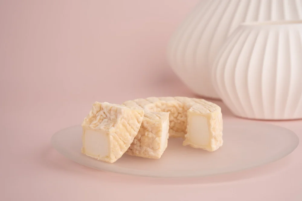 Introduced in 2024, Hooper commemorates Vermont Creamery’s 40th anniversary. It’s inspired by the Geotrichum rind, donut-shaped cheeses produced in France’s Loire Valley and is named after creamery co-founder Allison Hooper, who studied cheesemaking in Brittany, France.