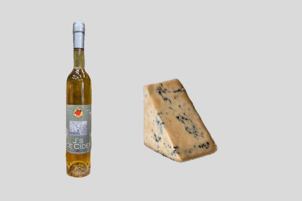 Russell Orchard J’s Ice Cider with Jasper Hill Bayley Hazen Blue or The Grey Barn and Farm Bluebird