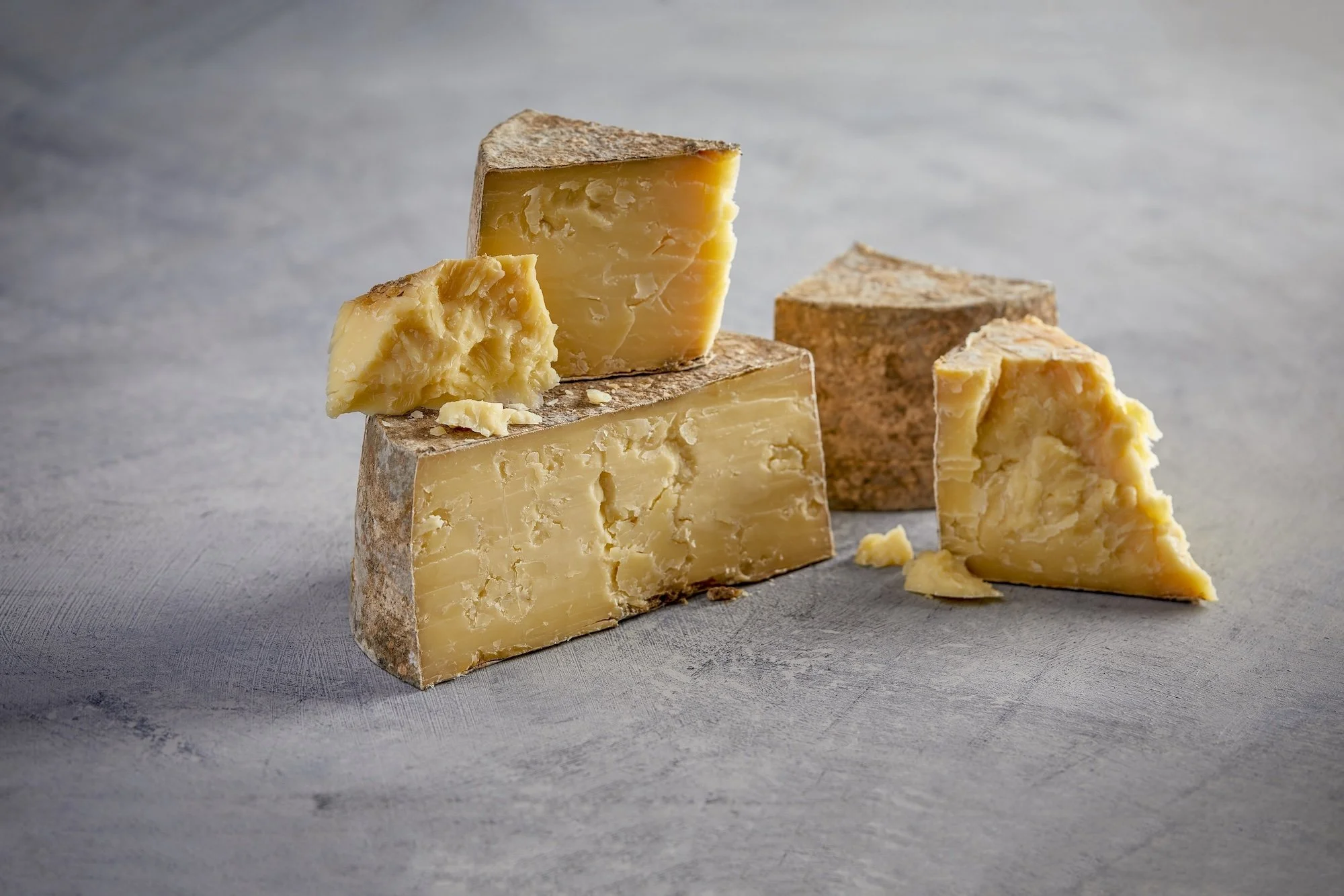 That advice seems like a contradiction since many cheeses soften as they age. But because Cheddar undergoes a process called proteolysis—the breakdown of casein proteins—it becomes drier over time. “An aged sharp Cheddar connoisseur is looking for that crumbly texture,” says Sommer. “You try to slice it and it’s brittle and breaks easily. You try to bend it, it immediately cracks.”